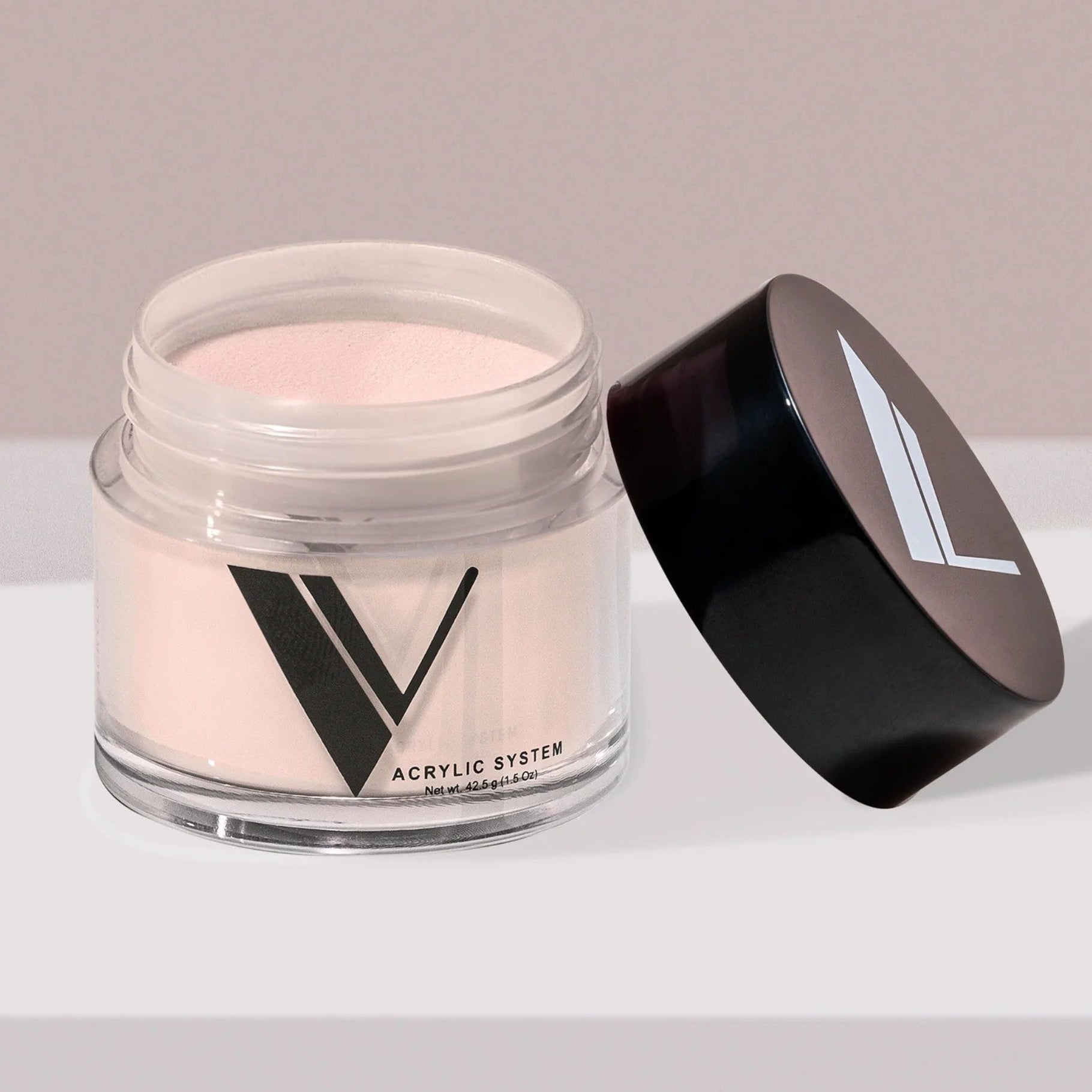 V Beauty Pure Beauty Pure's Acrylic Systems is developed to self level and create a flawless finish. This product has superior adhesion and shows true color. Our perfectly fine powder has great work ability; which allows for a bubble free, even toned look.