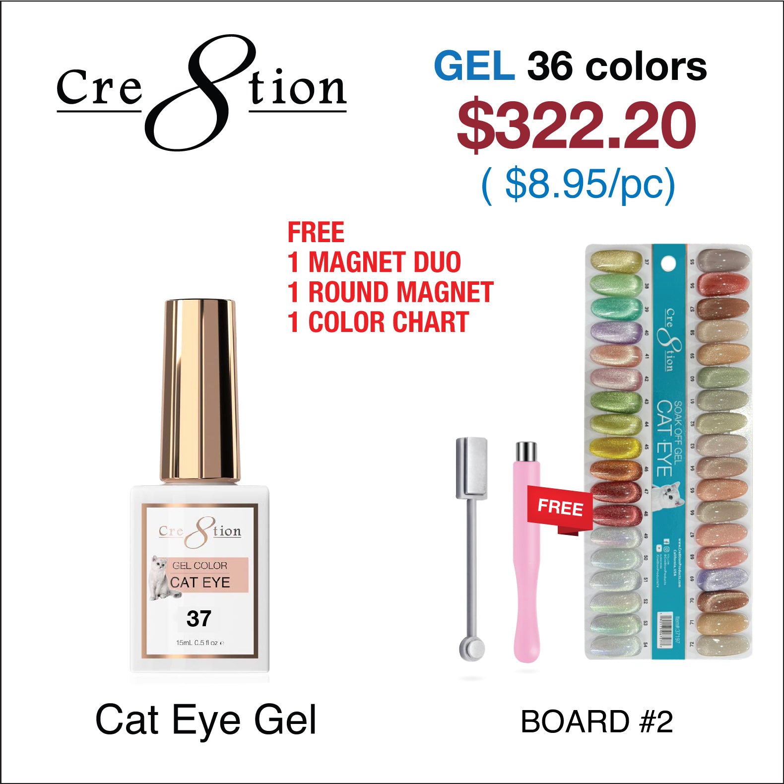 Cre8tion Cat Eye Nude Gel 0.5oz - 36 Colors Board 2 (#37 - #72) w/ 1 Round Shape Magnet, 1 Magnet Duo & 1 Color Chart