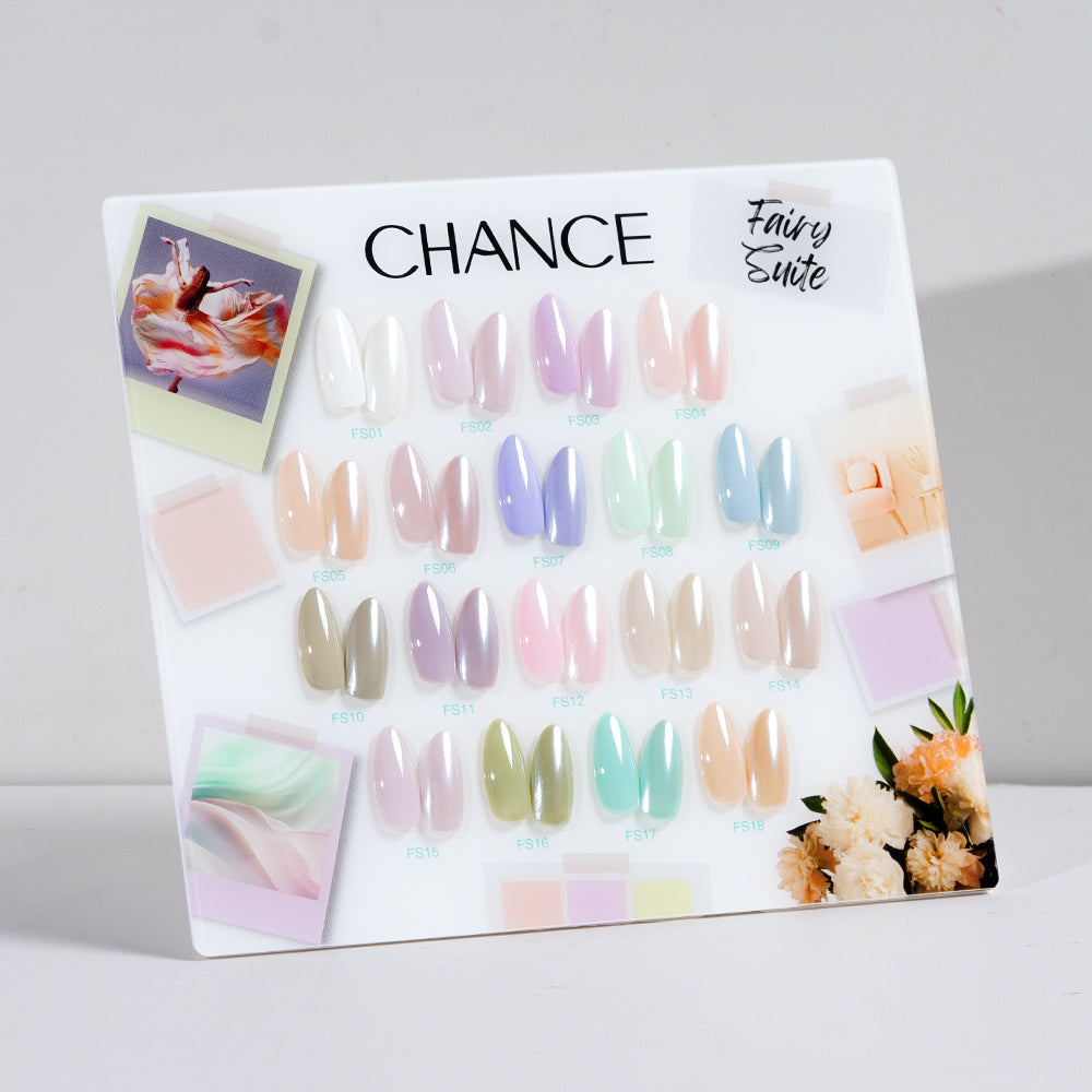 Chance Fairy Suite Collection 0.5oz - 18 Colors w/ 1 Counter Display, 3 Chance No Wipe Top Coat 0.5oz & 1 Cre8tion Crystal Chrome Nail Art (FS01 to FS18)