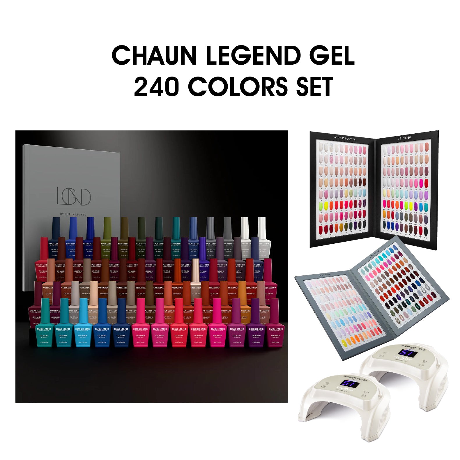 Chaun Legend - Gel Polish 0.5oz - Full Set 240 Colors w/ 2 Color Books & 2 Cre8tion Signature White LED Lamps