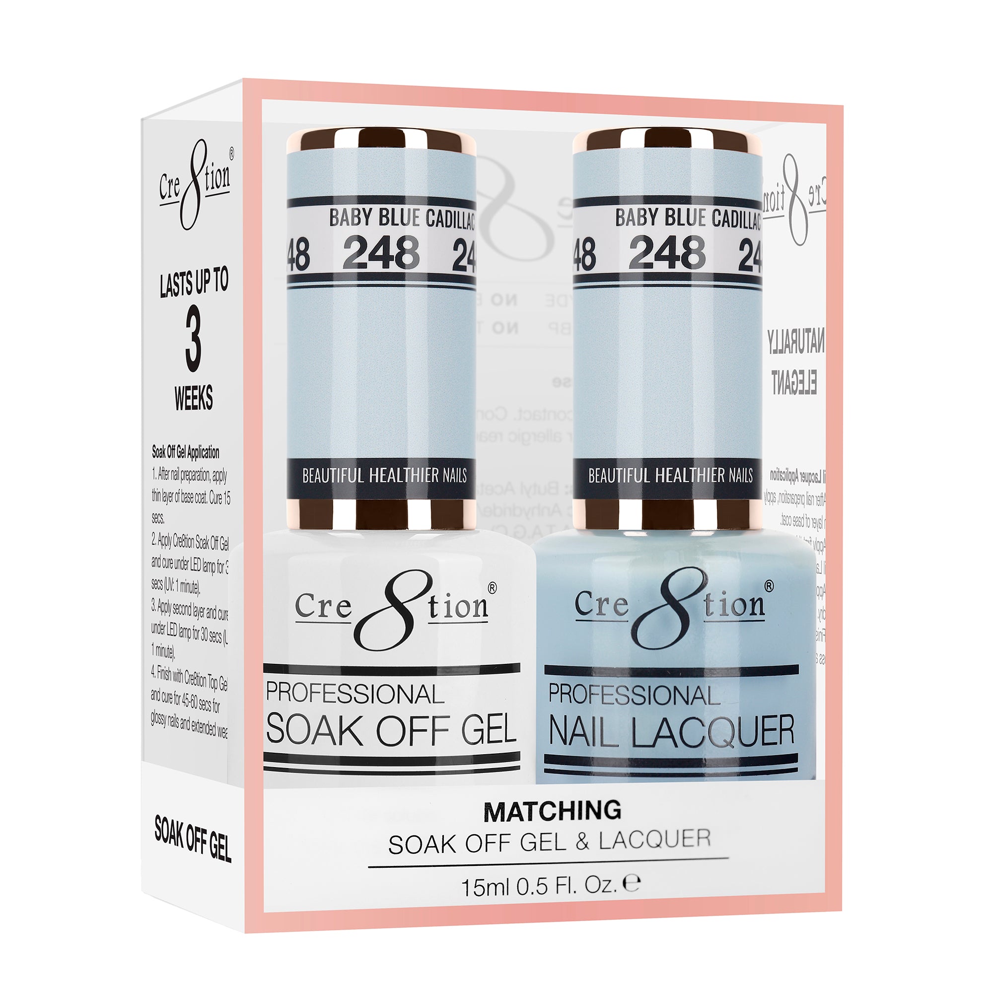 Cre8tion Soak Off Gel Matching Pair 0.5oz 248 BABY BLUE CADILLAC