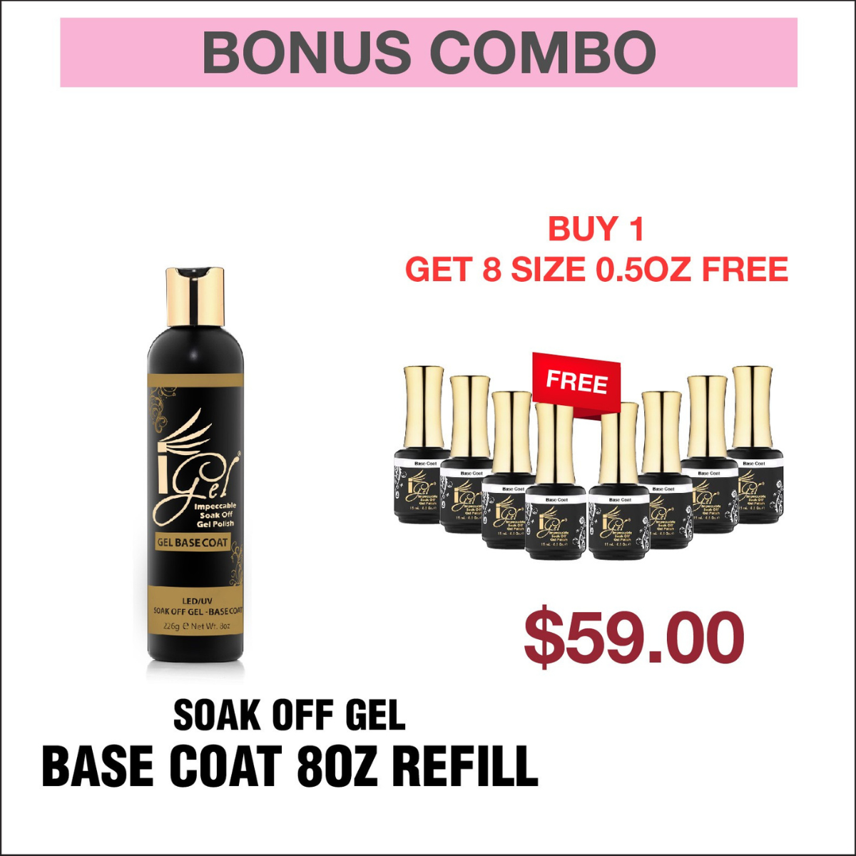 iGel Soak Off Gel Base Coat 8oz Refill - Buy 1 Get 8 Size 0.5oz Free