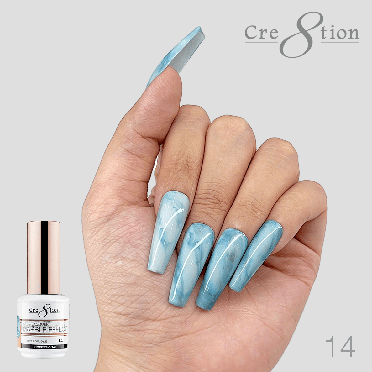 Cre8tion Gel / Lacquer Marble Effect goes on top to make any color have the natural beauty of marble. Can be used together with other marble effects on top gel or lacquer colors.