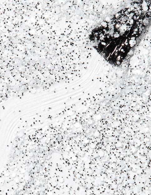 Stay calm and glitter on with this silvery glitz and glam nail polish.