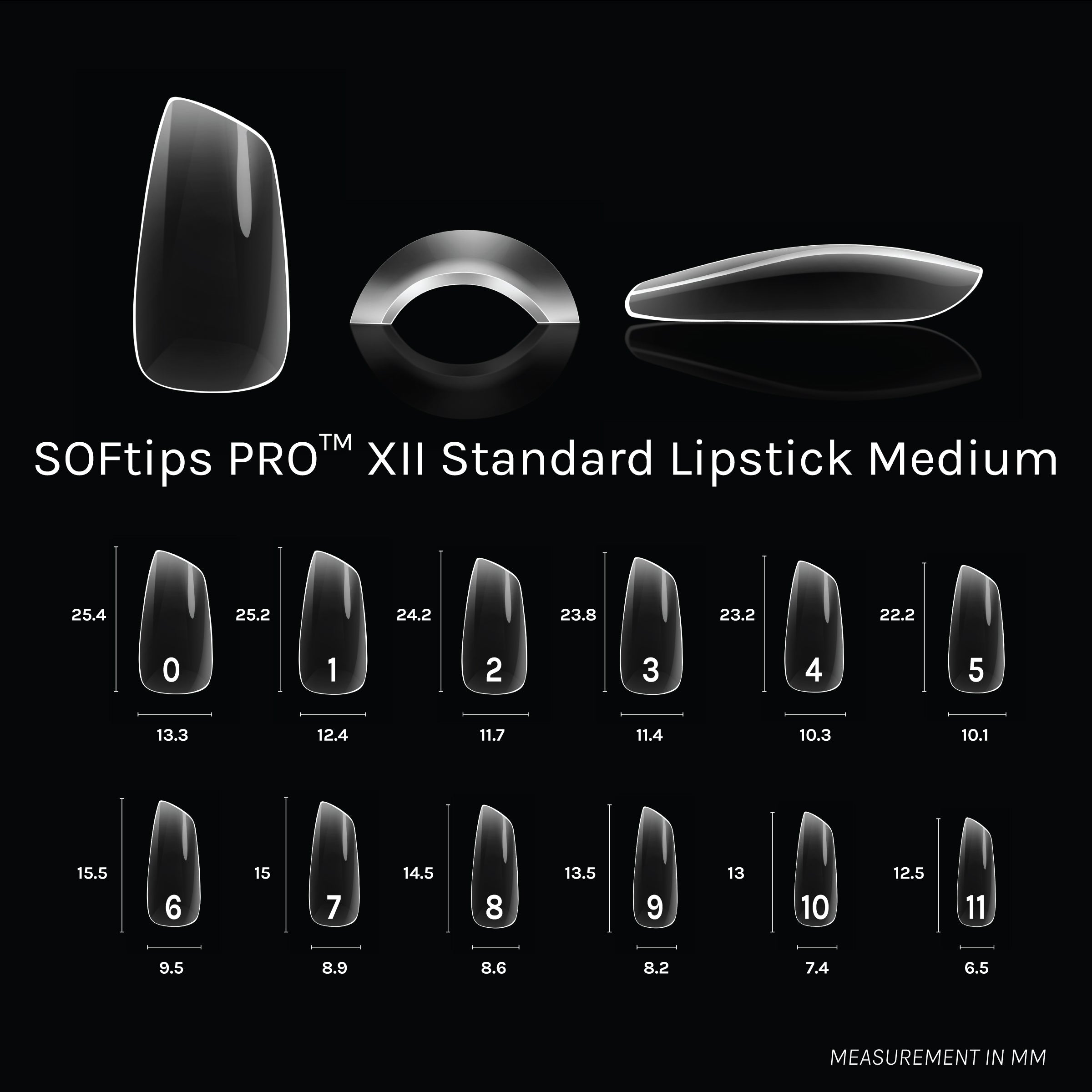 Crafted with exceptional flexibility, SOFtips™ seamlessly adapt to the unique contours of your natural nails, providing a tailored fit for all nail types- natural or curved. One box, one style- fits all. These pre-shaped tips feature an optimal thickness, providing a lightweight feel while ensuring enduring durability for a flawless, salon-quality finish that lasts over 3+ weeks.