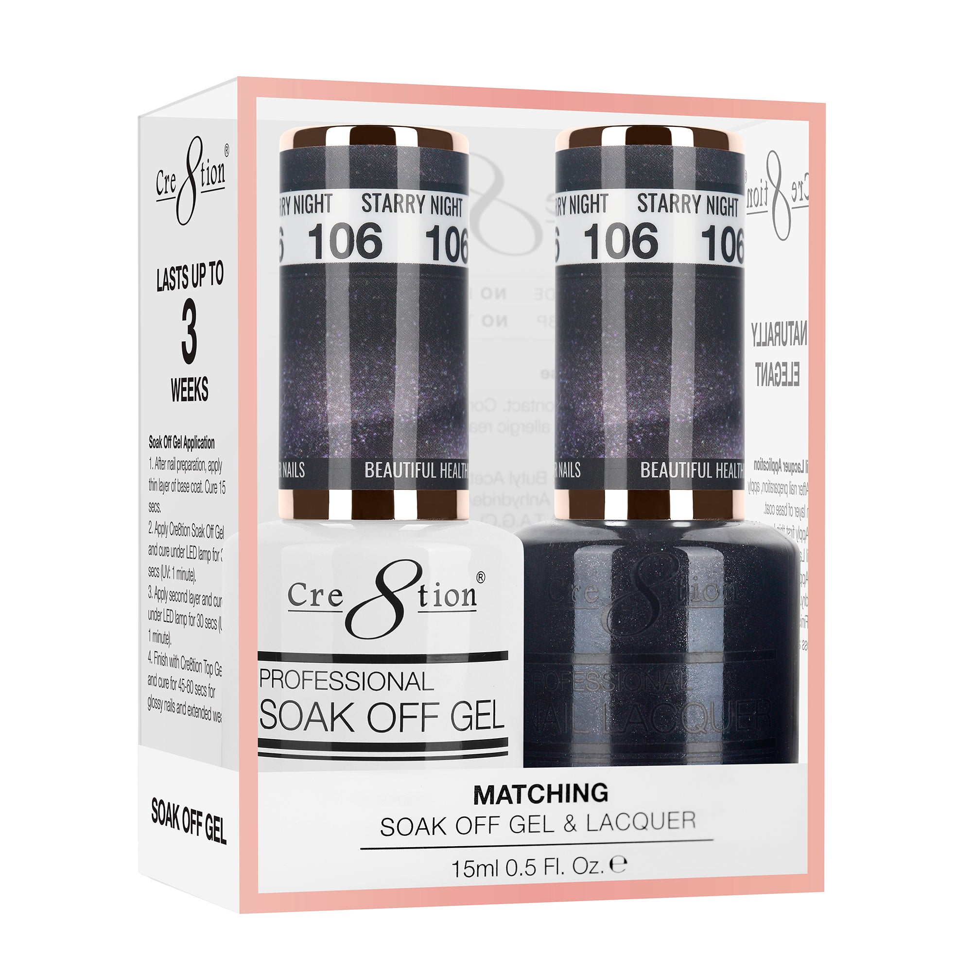 Cre8tion Soak Off Gel Matching Pair 0.5oz 106 STARRY NIGHT