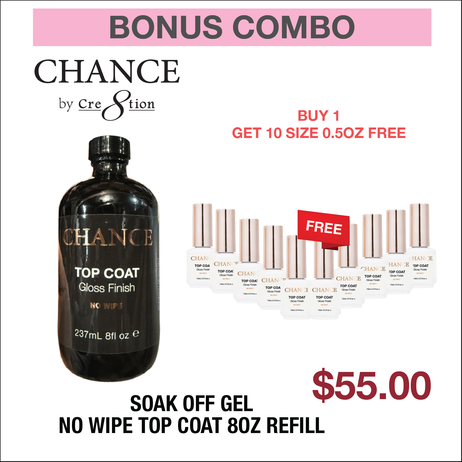 (Bonus Combo) Chance Soak Off Gel No Wipe Top Coat 8oz - Buy 1 Get 10 Size 0.5oz Free
