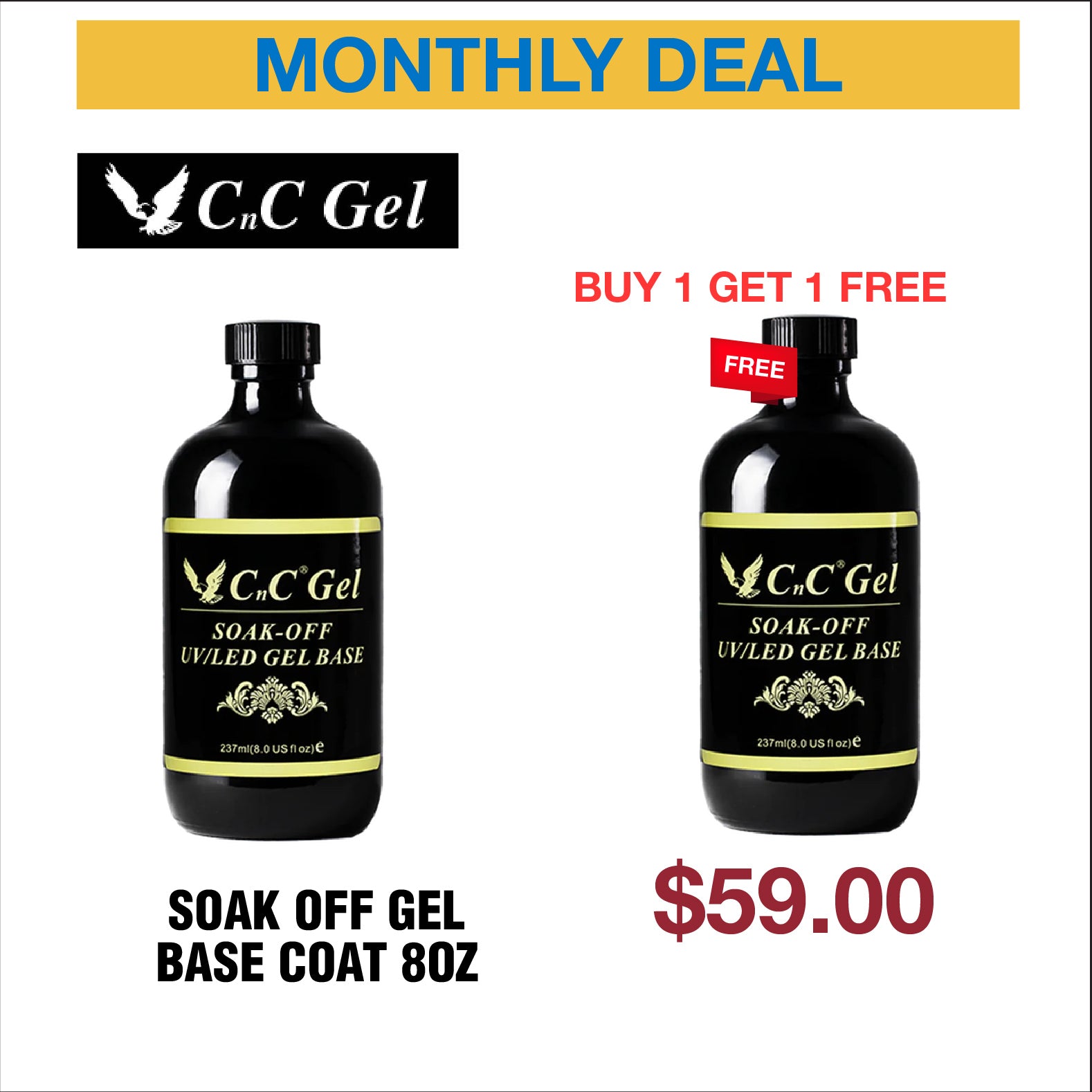 CnC Soak Off Gel Base Coat 8oz - Buy 1 Get 1 Free