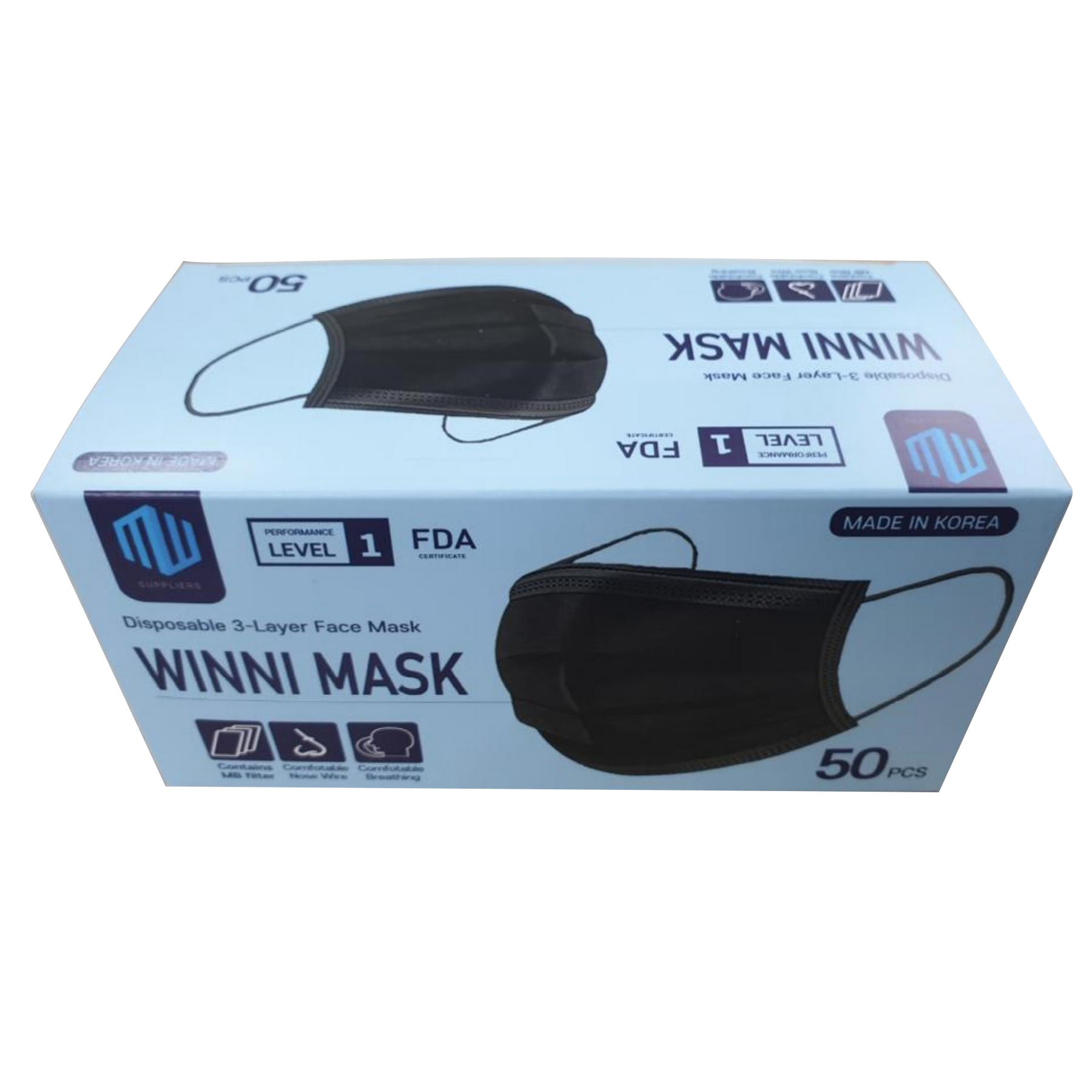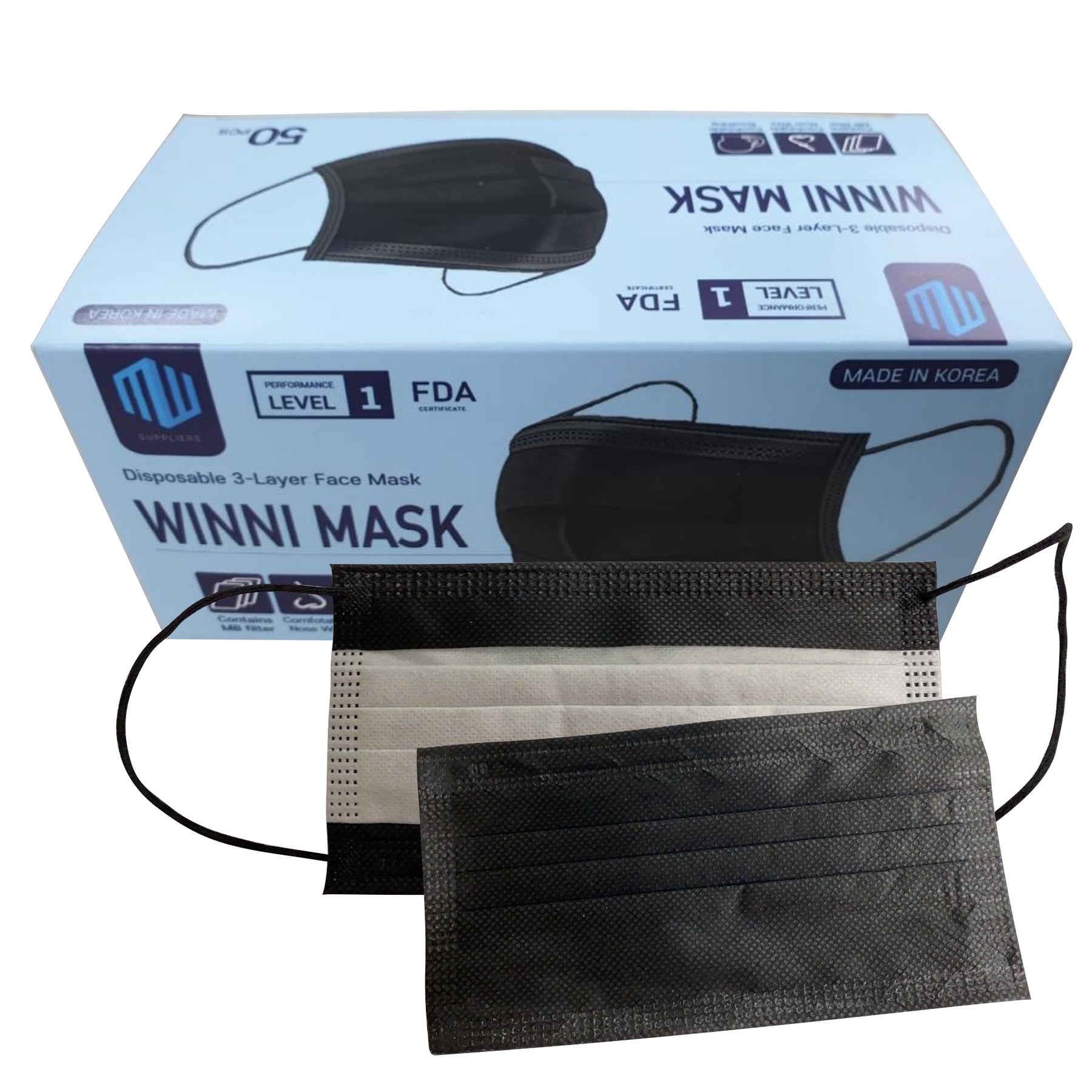 Winni Disposable Face Mask (Korea) - Black - Level 1 - 50pcs